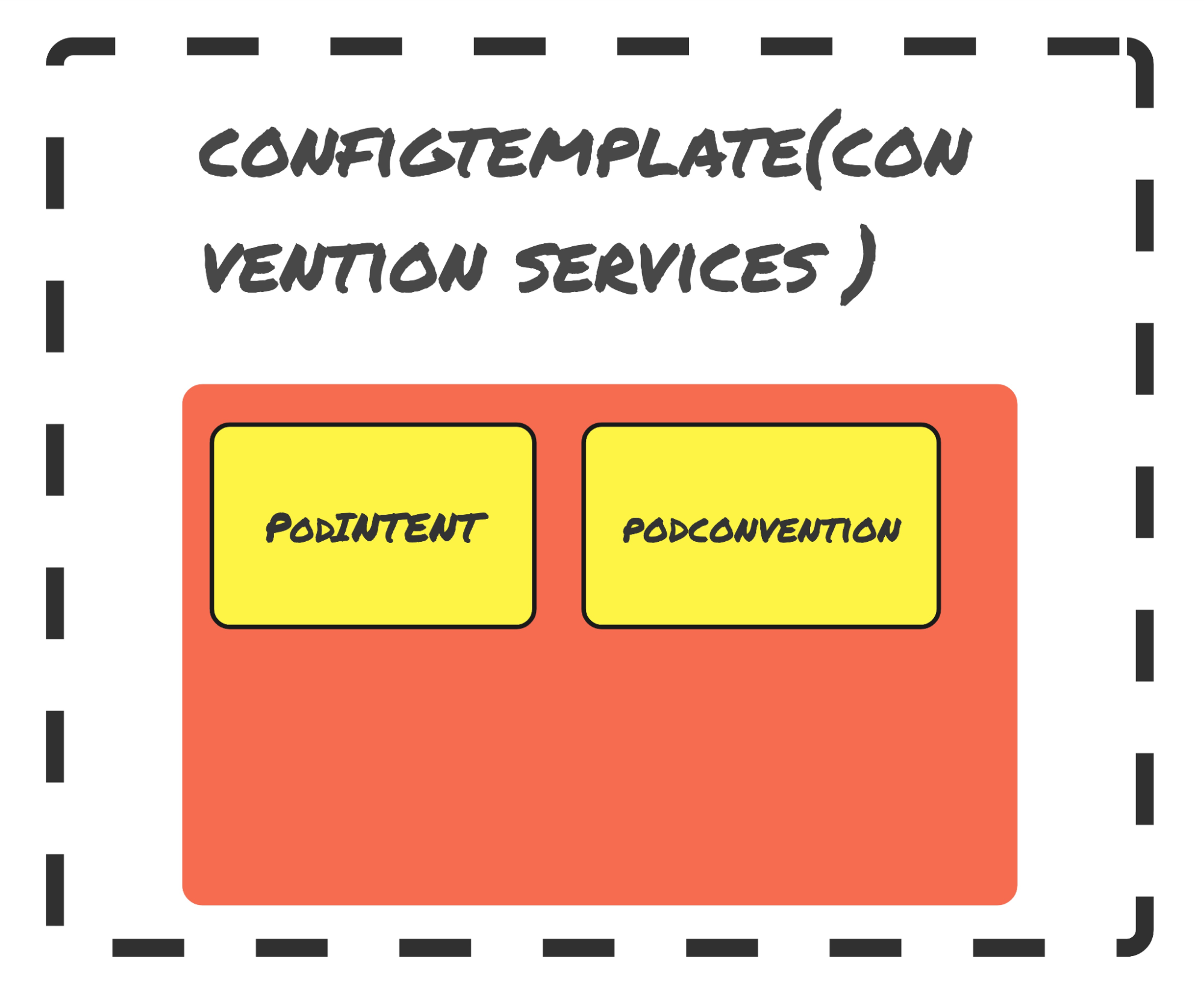 Config-provider calls the convention services, which enables people in operational roles to efficiently apply their expertise. Convention services specify the runtime best practices, policies, and conventions of the respective organization to workloads as they are created on the platform.